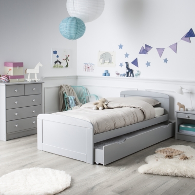 Ce lit gigogne allie parfaitement confort et gain de place avec ses deux couchages en un et ses deux tiroirs de rangement. Le couchage du bas et les tiroirs sont montés sur roulettes pour faciliter le déplacement. Le fond des tiroirs est constitué d'un panneau en mélaminé épais de 16 mm pour un maximum de rigidité. Ce lit rangement est équipé. Ce lit 1 personne avec tiroir de rangement appartient à la gamme micka.